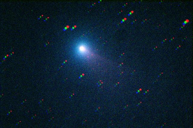 トップメニューに戻る ギャラリーメニューへ 写真をクリックすると大きく見られます。 壁紙などにご利用ください。 All Rights Reserved. リニアー彗星 リニアー彗星 2001年7月4日 千葉県九十九里町にて(64kB) 久々の肉眼彗星の姿。 モノクロCCDを使い、3色分解フィルターで撮影して合成した。 トップメニューに戻る ギャラリーメニューへ
