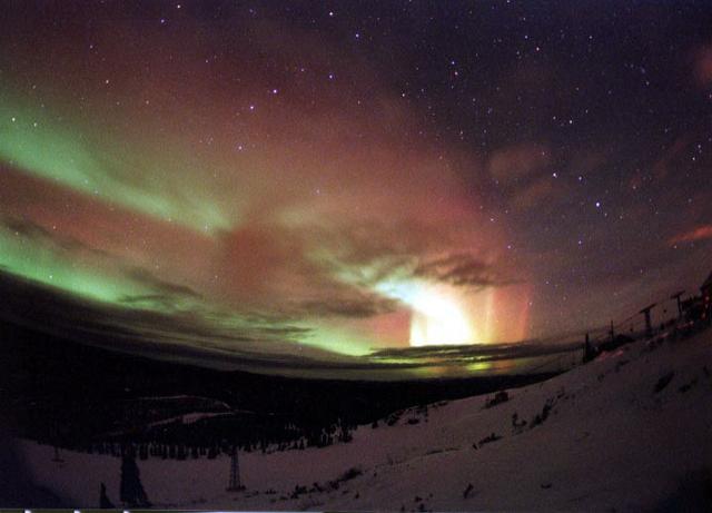 オーロラ 2001年1月1日 アラスカにて、鈴木康之氏撮影(31kB)