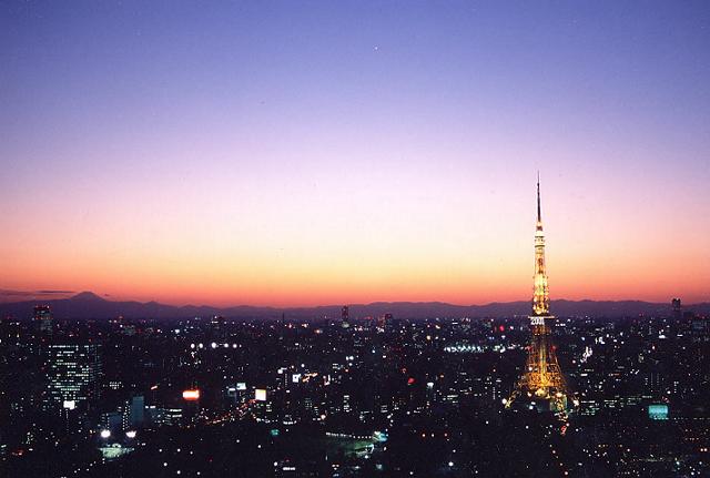 東京タワーと富士山 2001年3月 浜松町にて(36kB)