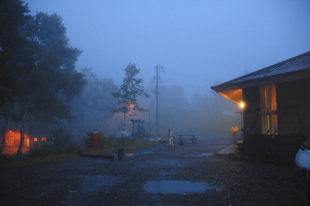 台風の日の霧わきたつ御嶽霧の受付 2005年7月26日