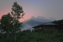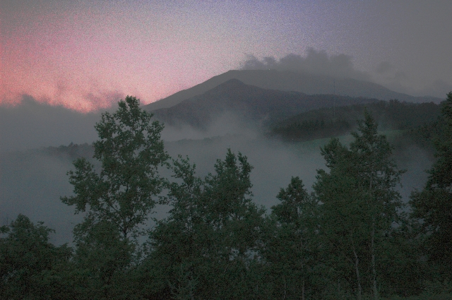 台風の日の霧と夕暮れ紫雲 2005年7月26日