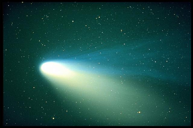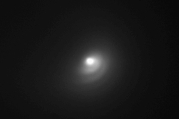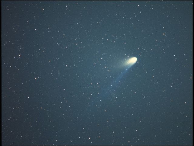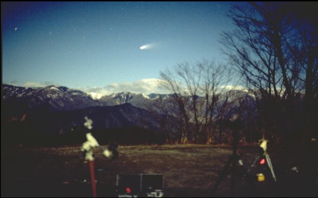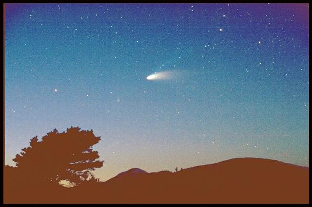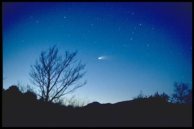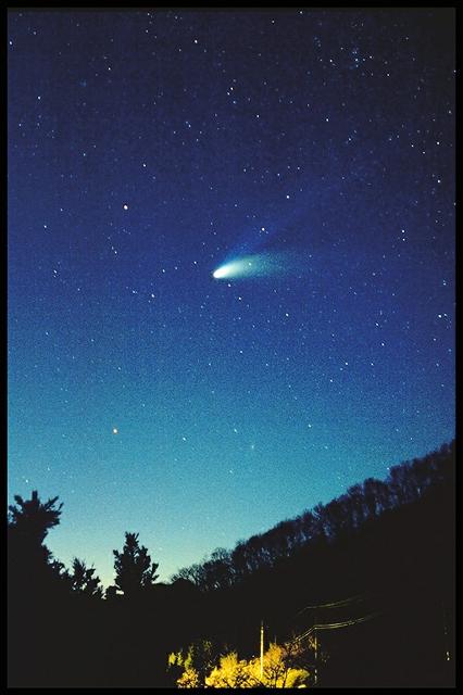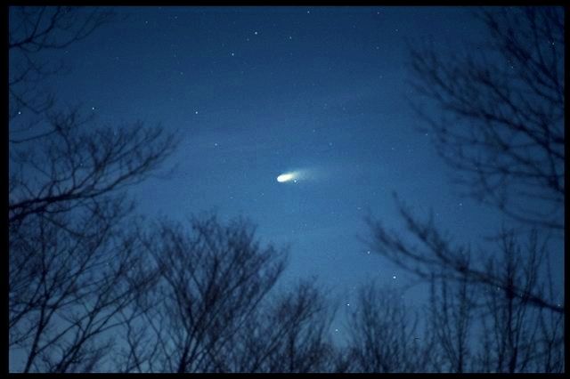 枯れ木の間から望む彗星。大きさを感じる。 |