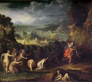 シシリア島のエンナの谷は、そよ風の精ツェフィロスだけが訪れることができる、険しい岩壁に囲まれた楽園だった。泉や湖が点在する草原には白百合、すみれ、ヒアシンス、あやめなどたくさんの花々が一年中咲き乱れていた。