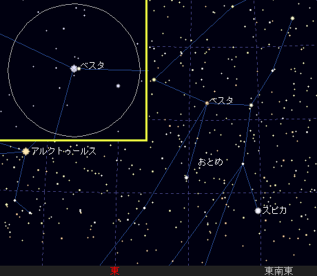 1月26日(日)、小惑星ベスタがおとめ座δ星に最接近します。