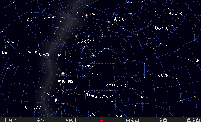 日没後、南東の空高く見えます。オリオン座の左上です。