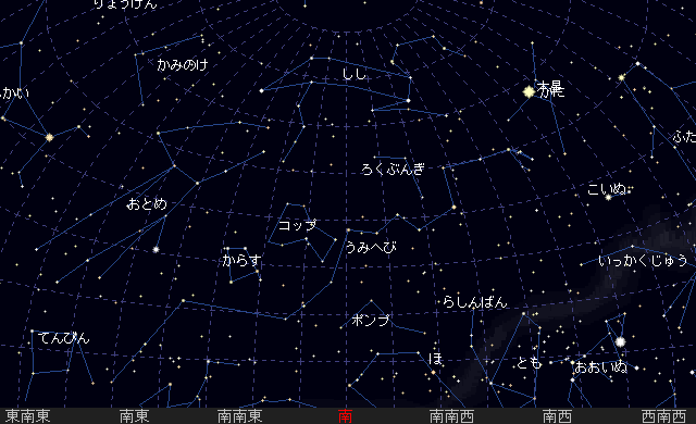 日没後南の空高く明るく見えます。