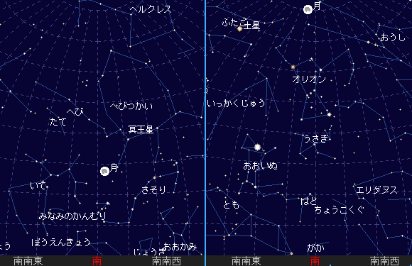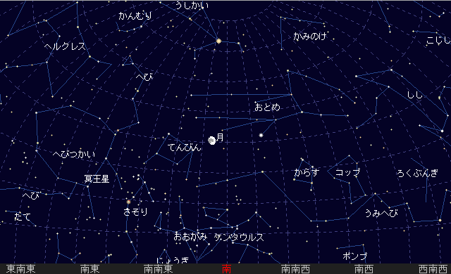 月の高さの差に注目してください。目盛は10度ごとになっています。