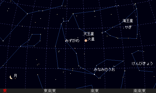 6月23日(月)未明、天王星と火星が接近して見えます。