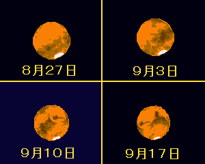 8月27日から1週間ごとの火星です。
