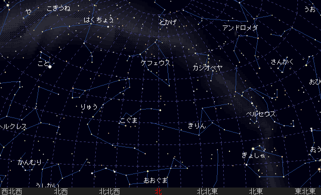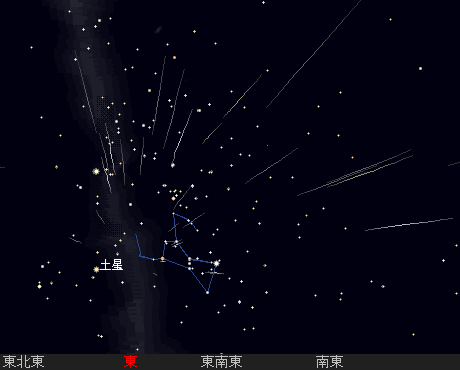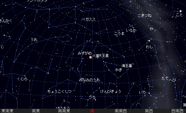 宵のうちから南東の空に見え、1時半頃しずみます。