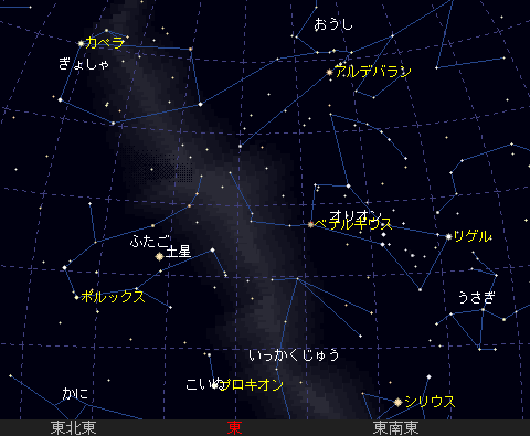 土星は、7つの1等星に囲まれたにぎやかなところにあります。