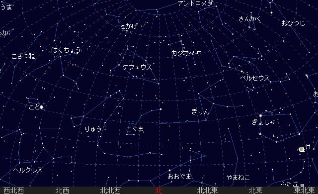 一番近づく午前4時頃はほぼ頭の真上近くに見られます。