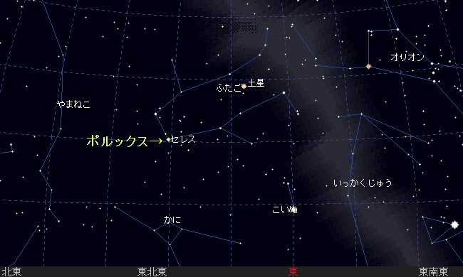 ポルックスはふたご座にある1等星ですので、かなり明るいので肉眼で見えます。