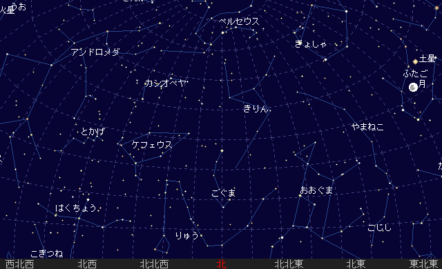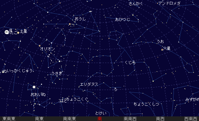 宵のうちから南西の空に見え、23時頃しずみます。