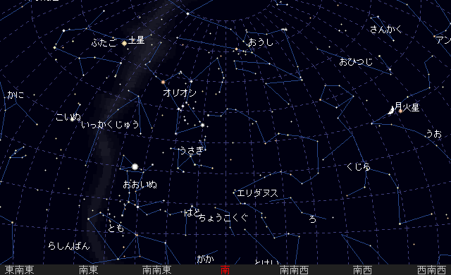 上弦付近です。1月下旬は日付から22をひくと月齢と同じになっています。