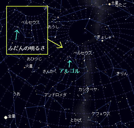 アルゴルは食変光星のひとつで、3日弱の周期で暗くなります。