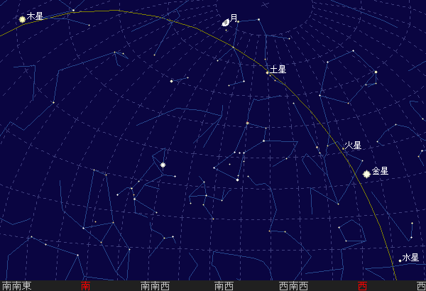 宵のうちから南東の空に見え、ほぼ一晩中見えます。