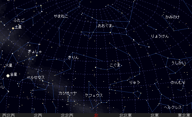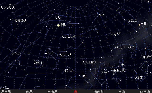 宵のうちから南西の空に見え、22時頃しずみます。