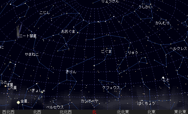 双眼鏡でねらってみてください。美しい尾も左上に見えるかと思います。