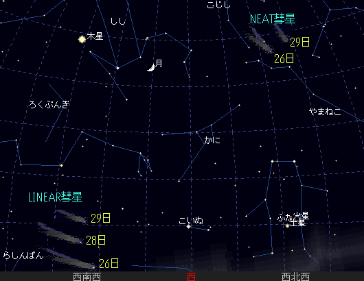 夕方西の空に、ニート彗星とリニア彗星が見えるようになります。