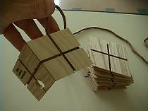 板の溝にひもを埋め込みながら、となりの板を接合させてゆく。