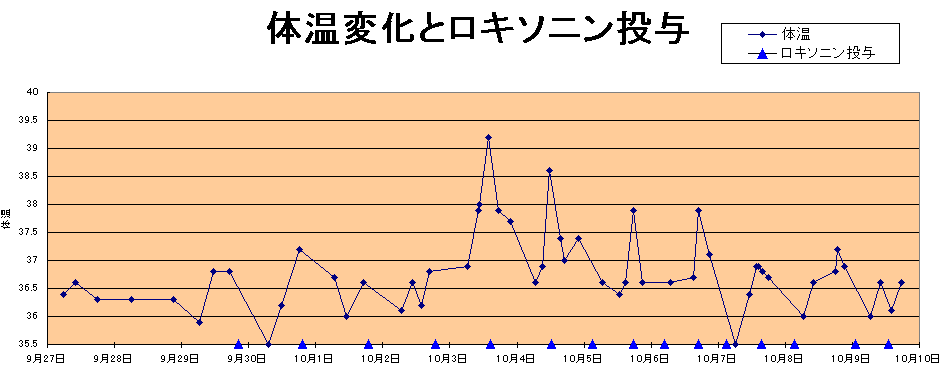 やはり10月5日は37.9度まで下がった。その後も6日に足踏みはしたが、だんだん体温が下がっている。
