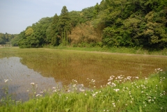 田植えがすんだばかりの水田の風景とカエルや鳥の鳴き声で癒されました。
